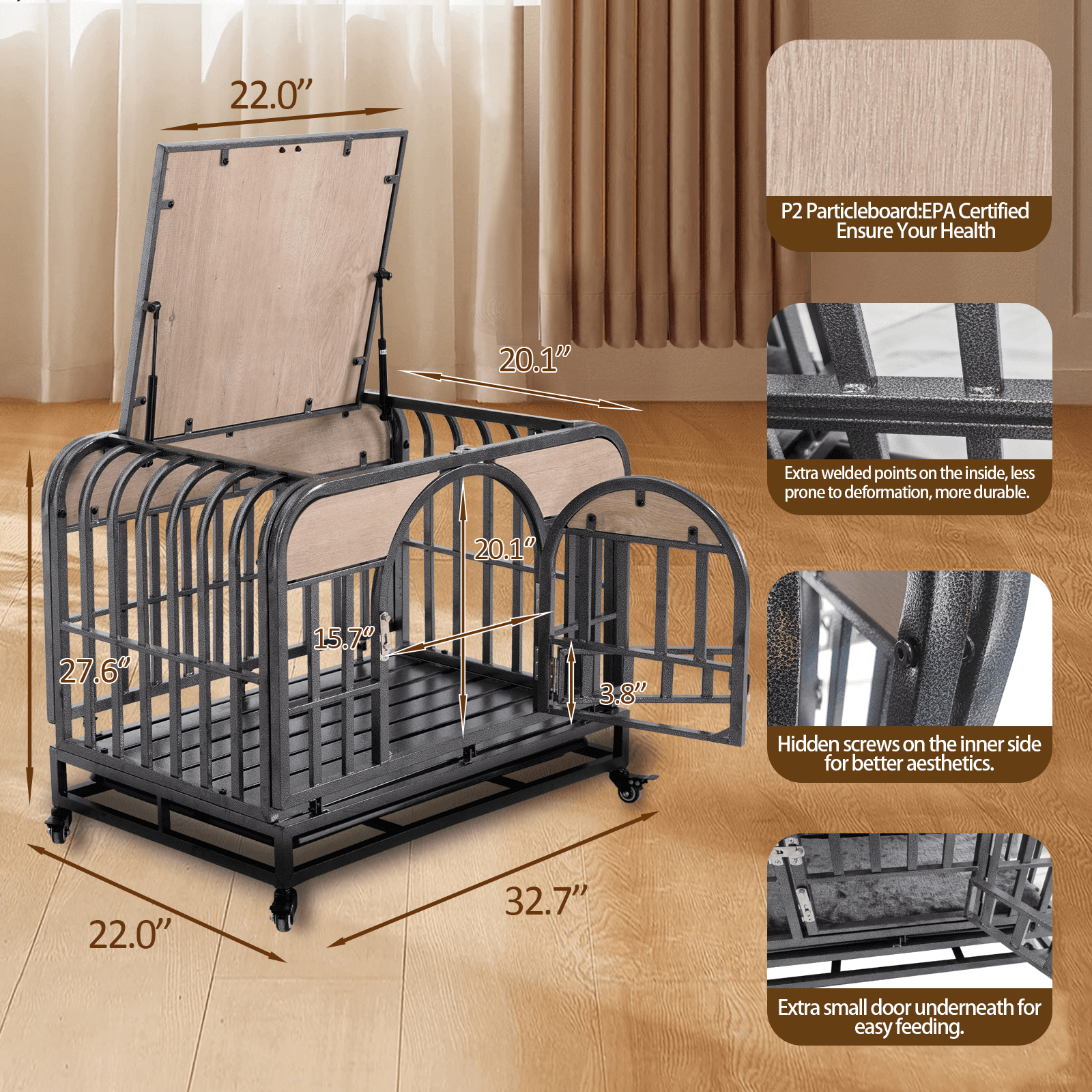 Enhanced Safety Features: Non-toxic coating with a secure sliding bolt latch on the door and a small feeding door to ensure pet safety and prevent escapes.