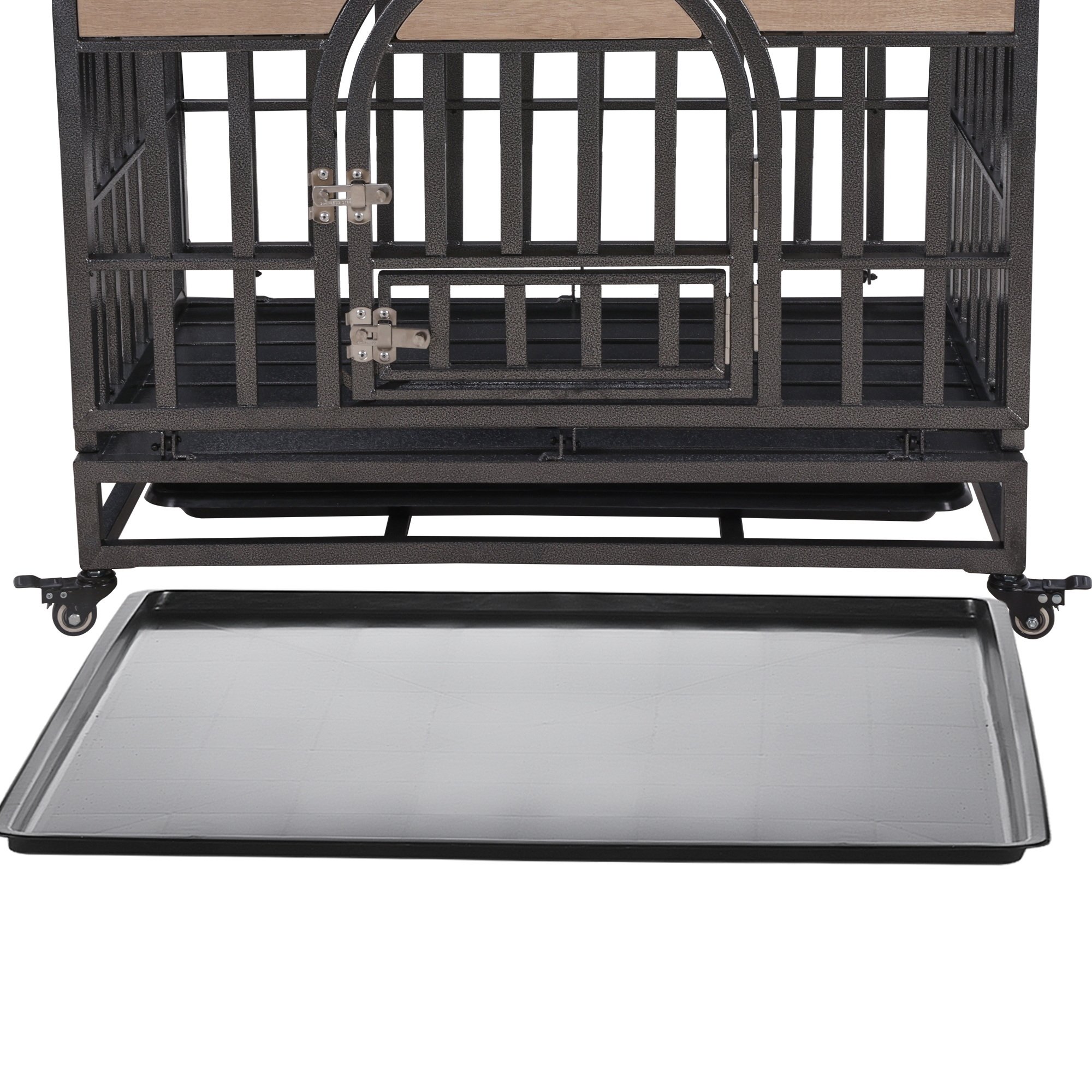 Home > 32in Heavy Duty Dog Crate, Furniture Style Dog Crate with Removable Trays and Wheels for High Anxiety Dogs