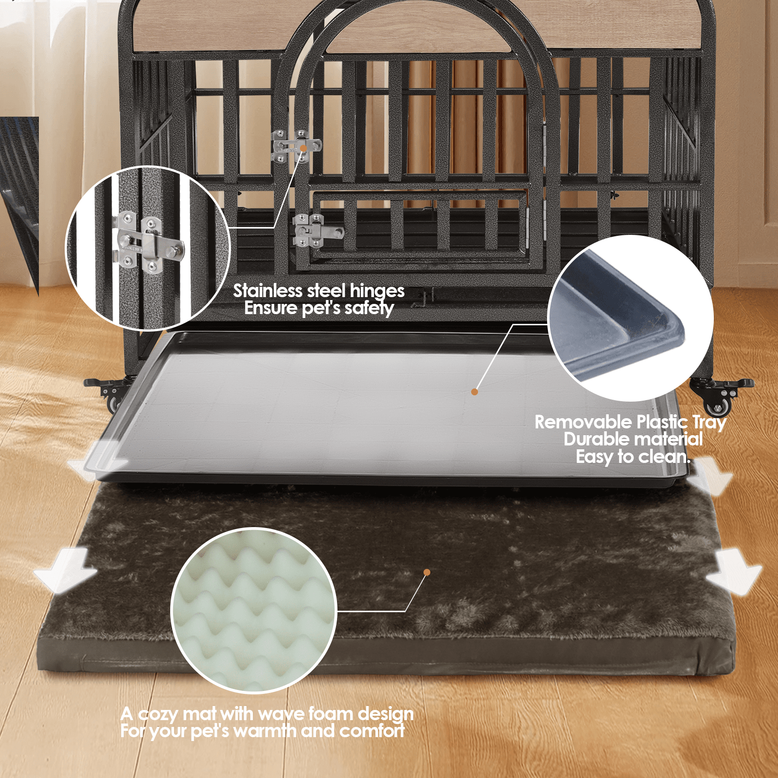 Pre-Assembled & Easy to Clean: Designed for convenience, this crate comes mostly pre-assembled with a removable tray, making cleaning quick and hassle-free.
