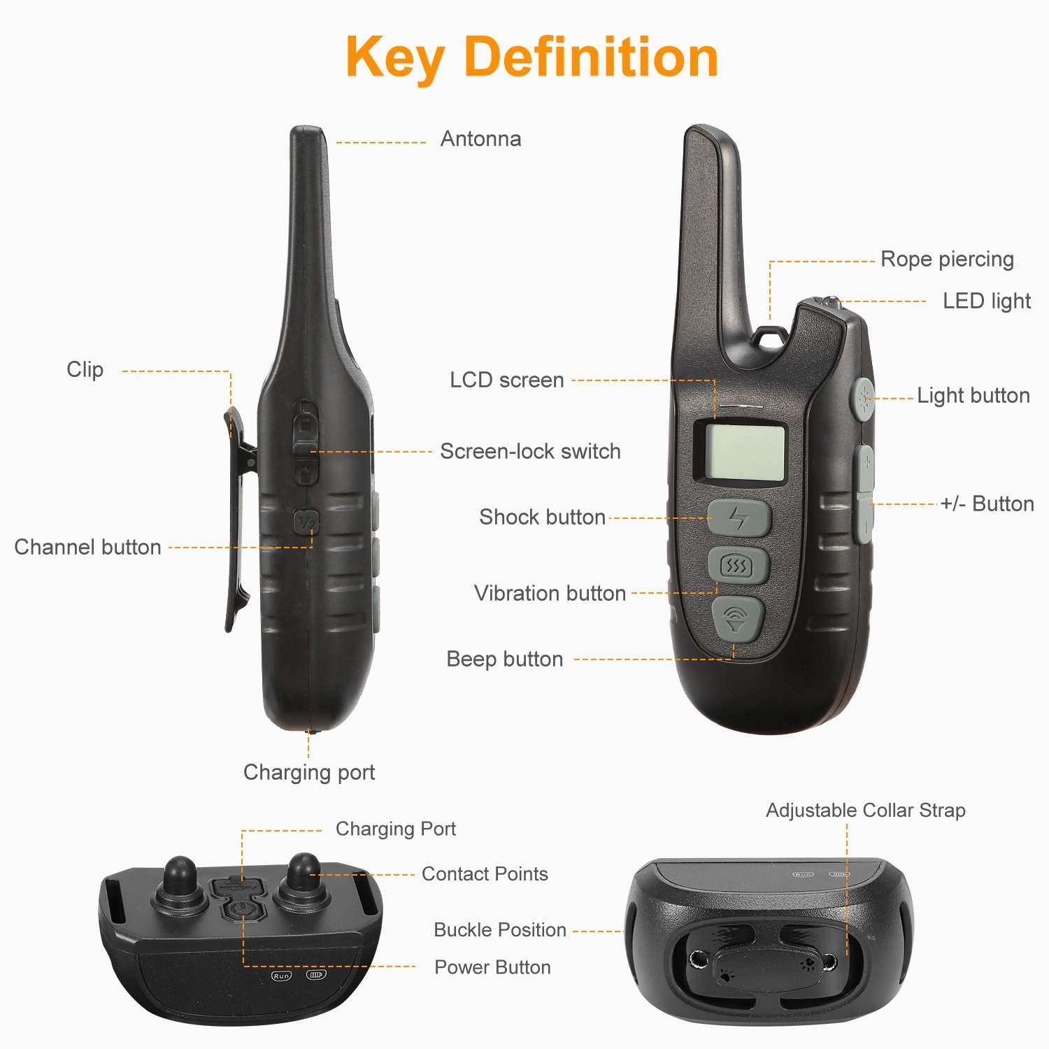 *3 Training Modes*:Provides 3 extremely efficient and safe training modes(beep,vibration and shock modes) for you to teach a dog basic obedience commands and correct your dog’s inappropriate behaviors.