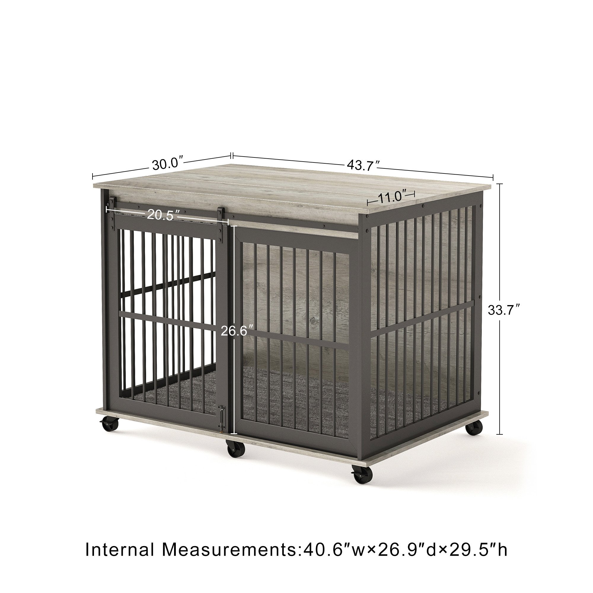 Furniture dog crate sliding iron door dog crate with mat. (Rustic Brown,43.7''W x 30''D x 33.7''H).