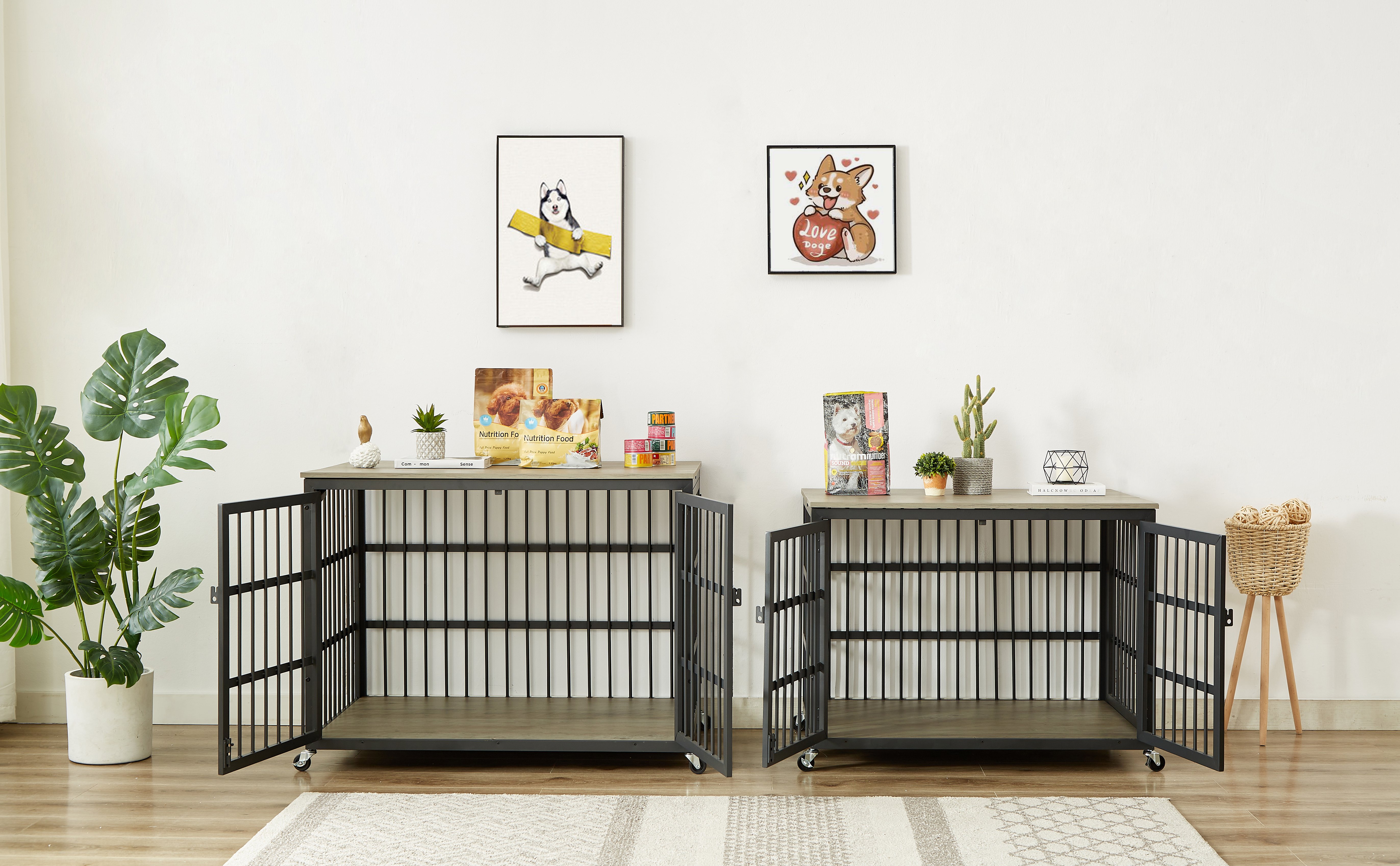 Home > Furniture style dog crate wrought iron frame door with side openings, Grey, 38.4''W x 27.7''D x 30.2''H.