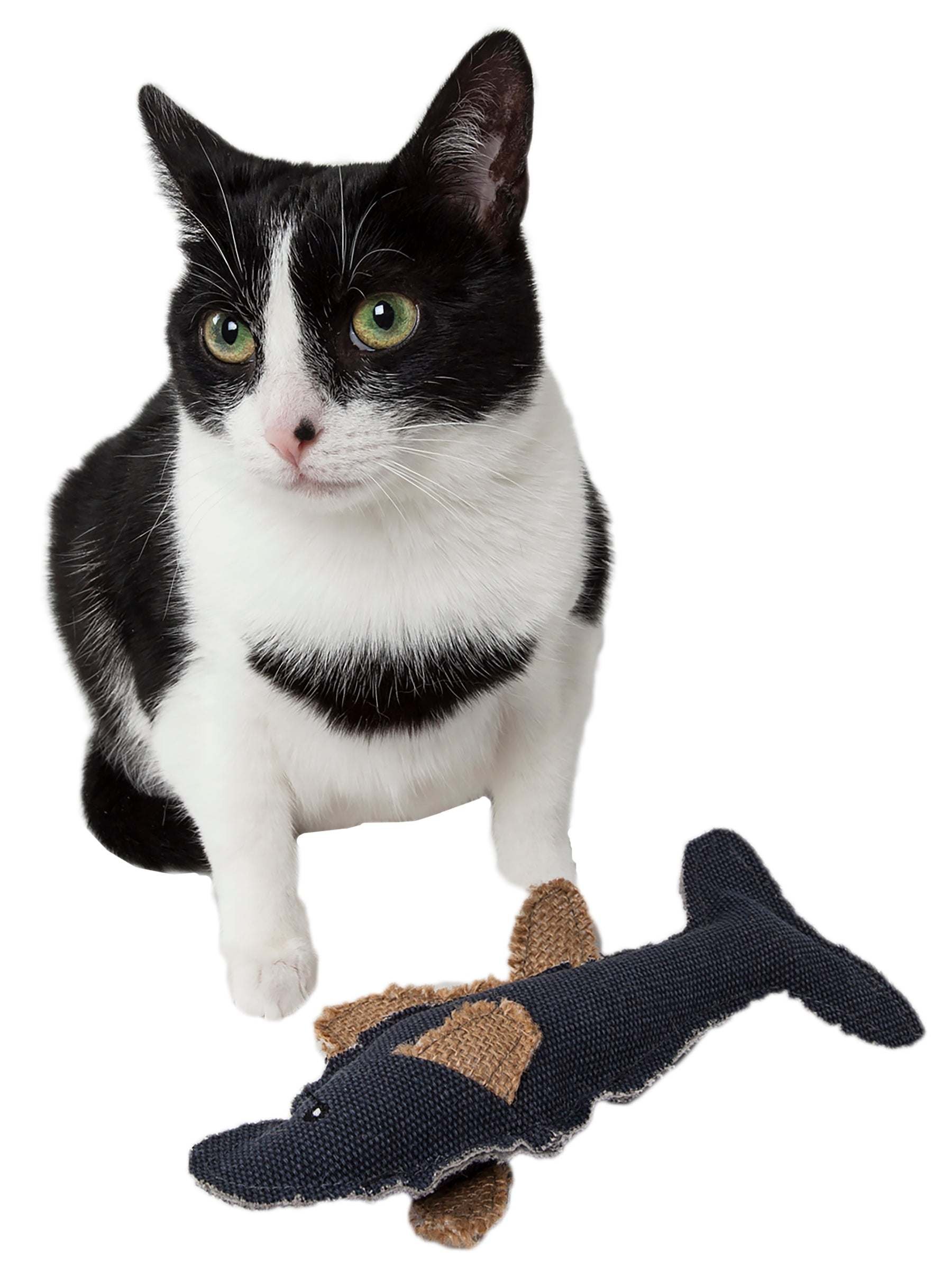 The Pet Life durable dual sized denim fish plush kitty catnip cat toy is super strong. Features a fish body resemblance. Composed of heavy duty oxford with reinforced stitching for added durability and scratch-resistance. Available in both a larger and a smaller size. The inside is lined with eco-friendly recyclable polyfill. This toy is also water resistant and machine washable.