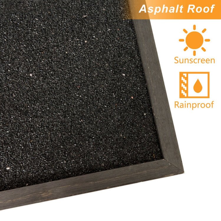 3.Weather-Resistant Design: The slanted asphalt roof can effectively divert rainwater to prevent water ponding. The seamless slat design provides protection against bad weather and the raised floor can prevent water flowing into the house, offering a warm and comfortable shelter for your pets.