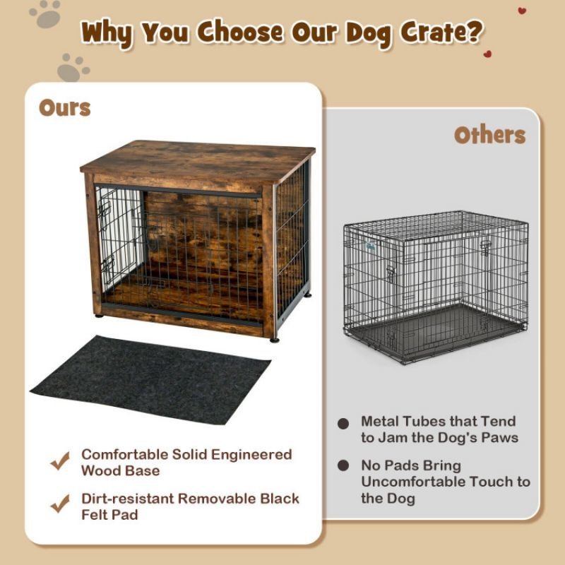 1.More than A Dog Crate: Designed with a unique 27" x 18.5" wooden table top, this dog crate can hold your regular items or decorations for the living room or bedroom and is suitable for use as a side table or nightstand. In addition, the rustic wood grain and minimalist design make this dog crate easily blend into any furniture style as a stylish furniture piece.